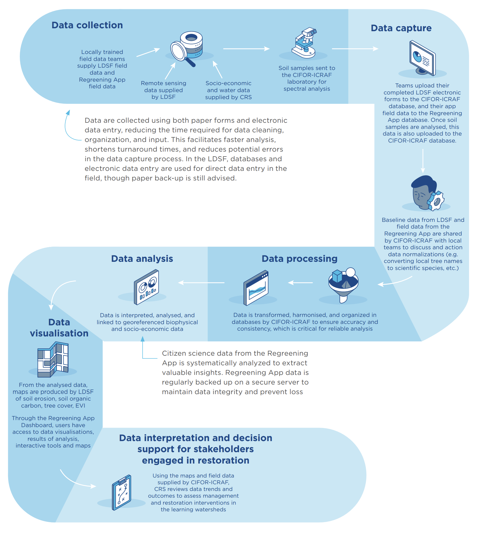 Data collected through the LDSF provide a robust input for hgih-accuracy predictive modeling. Each measured variable can be used to train machine-learning algorithms, typically random forests or boosted regression trees using geospatial covariates such as Sentinel-2 spectral indices, elevation, rainfall, and temperature.