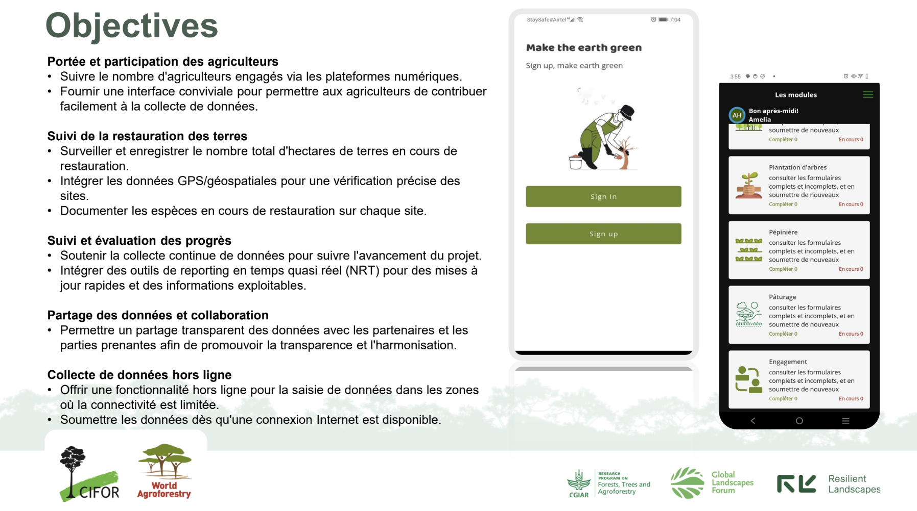- The Regreening App enables participants to capture who did what, where, and when, including intervention type, species, and site context - using GPS-enabled smartphones.