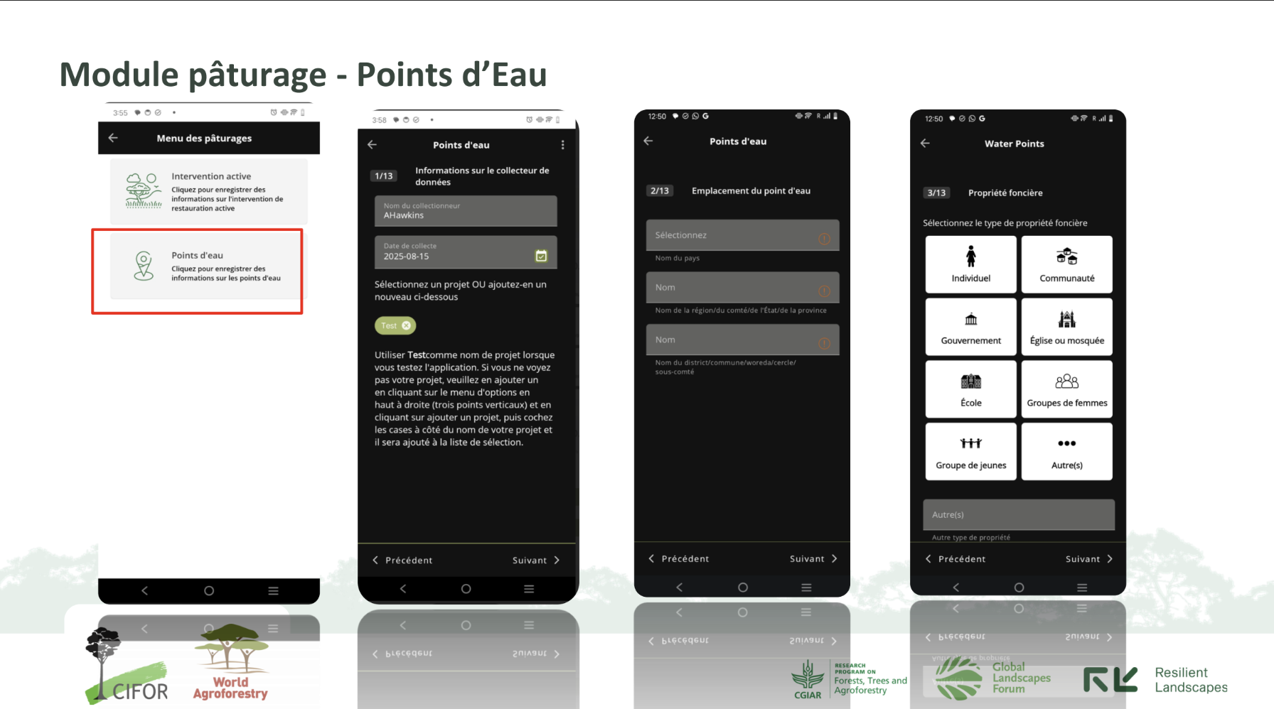 Photos from the field of participants capturing data using the Regreening App’s Tree Planting module. Credit: Adama Tounkara